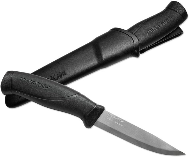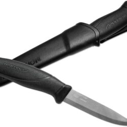 The Morakniv Companion Heavy Duty Knife with Stainless Steel Blade is a 4.1-inch fixed-blade outdoor knife. Ideal for when the going gets tough, it’s a powerful tool for bushcrafters, hunters, and outdoor enthusiasts, thanks to its extra-thick and durable 0.125-inch hardened Sandvik 12C27 stainless steel blade, which resists rust and corrosion when exposed to dirt and moisture. A large, impact-resistant ergonomic handle, with a patterned, high-friction rubber grip, ensures comfortable use and handling in rugged conditions. Blade thickness is 0.125 inches, blade length is 4.1 inches, total length is 9.25 inches, and net weight is 4.8 ounces. The Morakniv Companion Heavy Duty Knife with Stainless Steel Blade includes a color-matching plastic sheath with belt clip. Morakniv has been manufacturing the highest-quality knives in Mora, Sweden since 1891. Manufacturer’s limited lifetime . Made in Sweden.
